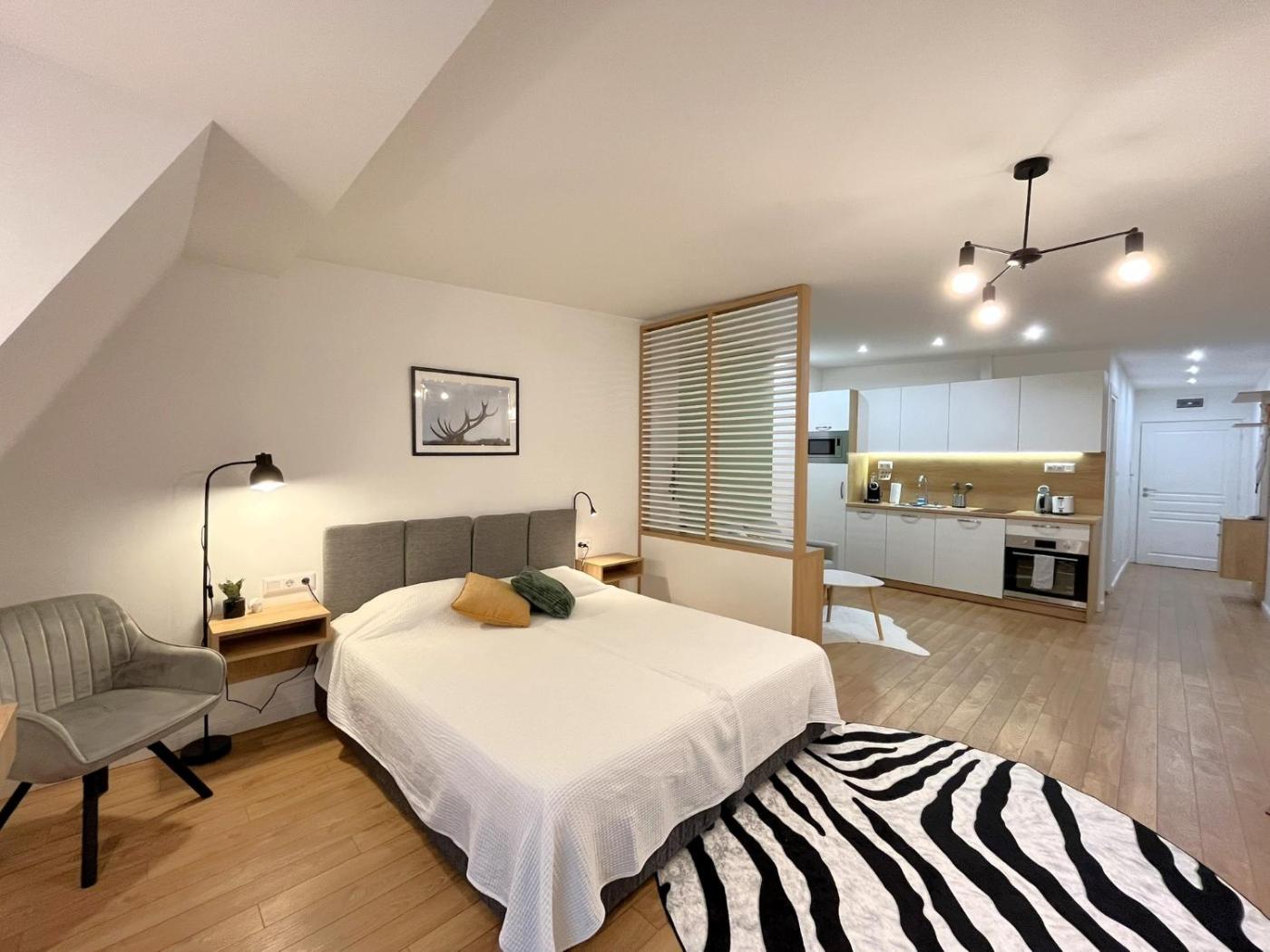 Deluxe Studio. Providing free toiletries, this studio includes a private bathroom with a walk-in shower, a hairdryer and slippers. The fully equipped kitchen features a stovetop, a refrigerator, a dishwasher and kitchenware. This air-conditioned studio consists of a dining area, a flat-screen TV with satellite channels a washing machine and a patio. The unit offers 1 bed.