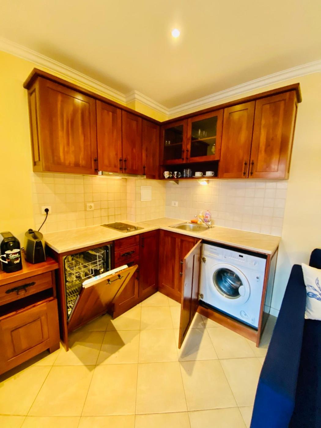 Two-Bedroom Apartment. This luxurious apartment has a pool with a view, a hot tub and a sauna. Boasting a private entrance, this air-conditioned apartment comes with 1 living room, 2 separate bedrooms and 1 bathroom with a walk-in shower and a hairdryer. Meals can be prepared in the kitchen, which features a stovetop, a refrigerator, a dishwasher and kitchenware. The spacious apartment features a flat-screen TV with cable channels, a washing machine, a tea and coffee maker, a seating area as well as sea views. The unit has 4 beds.