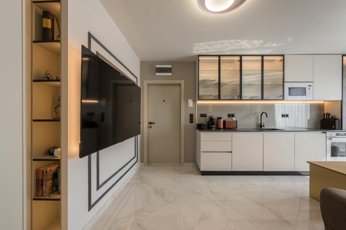 One-Bedroom Apartment. Meals can be prepared in the kitchen, which features a stovetop, a refrigerator, a dishwasher and kitchenware. The air-conditioned apartment features a flat-screen TV with satellite channels, a washing machine, soundproof walls, a tea and coffee maker as well as sea views. The unit has 2 beds.